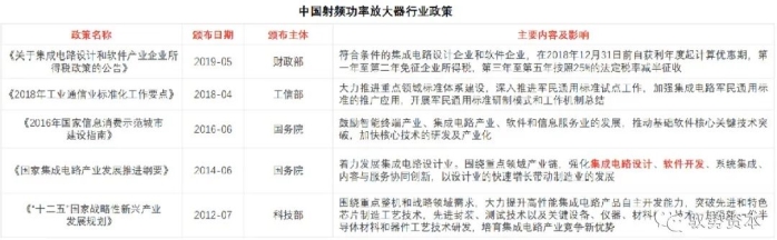 中国射频功率放大器行业政策分析