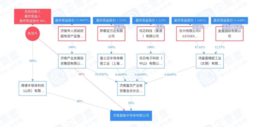 企查查显示,变更前,济南富能半导体有限公司第一大股东为济南富杰产业投资基金合伙企业(有限合伙),持股比例为60%;第二大股东为陈昱升,持股比例为40%。