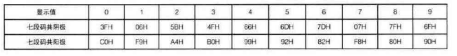 表1 显示的数字和七段码各位的对应关系表
