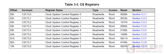 从下图可以看出,时钟模块总共有9个寄存器,CSCTL0 – CSCTL8,下面对这九个寄存器进行详细描述: