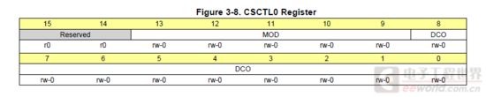 CSCTL0寄存器里有两个参数,MOD和DCO,MOD指的是调制位计数器,DCO指的是Tap寄存器,听起来很陌生,熟悉起来其实很简单,这需要从FLL内部原理说起: