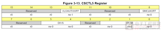 CSCTL5寄存器包含四个参数,VLOAUTOOFF是设置VLO时钟再不使用状态下是否会自动关闭的参数,写1时(默认也就是1),再不使用VLO时钟时,会自动关闭,为什么要关闭呢,低功耗呀!!!!