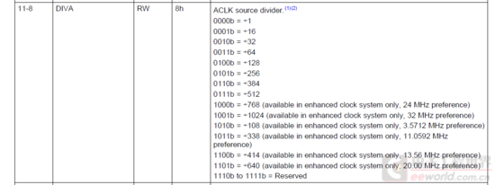 DIVA是对ACLK时钟源的分频,具体如下: