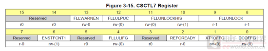 CSCTL7寄存器里的数据直接默认即可,基本不需要设置,很多情况下用于调试查找问题作为标志使用,详情去看User Guide。