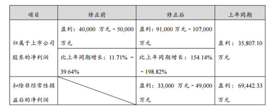 1月29日,赣锋锂业披露业绩预告修正公告。赣锋锂业于三季报中预计2020年1-12月归属于上市公司股东的净利润变动区间为40,000万元至50,000万元;变动幅度为11.71%-39.64%。修正后的预计业绩为盈利91,000万元-107,000万元,比上年同期增长154.14%-198.82%。