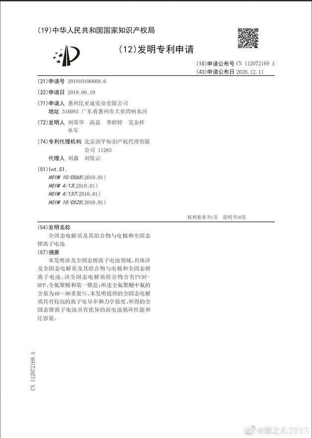 2021年02月01日 | 能量密度大增,比亚迪固态电池专利曝光,或2022年装车