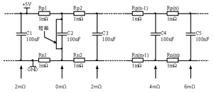 如图7所示,Rp1~Rp(n)是+5V电源线的PCB电阻,阻值均为1mΩ;Rn1~Rn(m)是GND地线的PCB电阻,阻值均为1mΩ;C1~C5是+5V电源的退耦电容。假设在电容C2下方隐藏有短路,那么在C2处测得的电阻为0mΩ;在C1处测得的电阻C2处测得电阻加上Rp1和Rn1,共为2mΩ;同样的道理,C3~C5处测得的电阻依次是2mΩ、4mΩ和6mΩ。C2处测得的电阻最小,因而可以断定C2下方有短路。