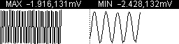 图5是使用直方图观测被本底噪声淹没的信号的实例。图左侧是电路本底噪声的时域波形(下方,垂直方向是时间轴方向。下同。)及其直方图,该噪声基本符合高斯分布,认为是白噪声。图右侧是电路加入一个3μVpp左右的脉冲方波后的测试结果。对比时域波形,右侧信号波形跟左侧白噪声波形很相像,电压平均值也相接近,不能直观地判定两种波形的区别。但是对比两者的直方图可以明显发现两种信号的区别,而且通过右侧直方图可以推断加入的信号有低电平分量,且该低电平分量出现概率不大,近似于占空比很小的负脉冲。