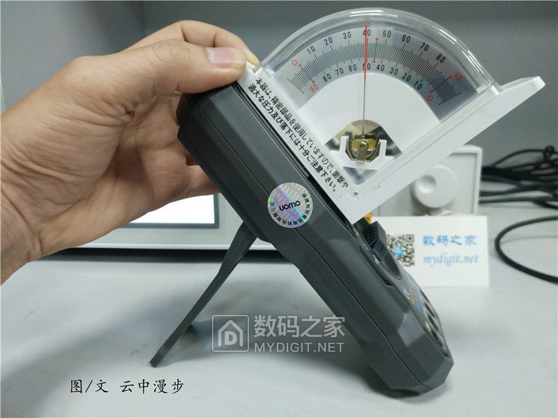 OW18B机身背后带有简易支架,40°的倾角方便测试者观看。