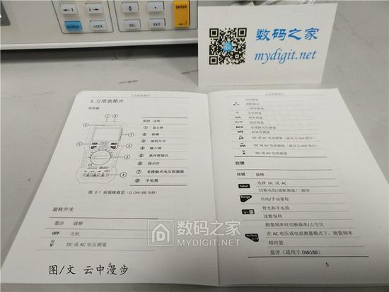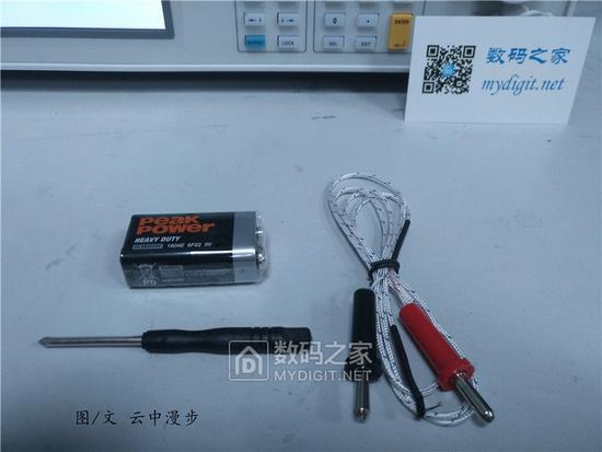 包装内容物含有OW18B主机一个,9V 叠层电池一个,十字螺丝刀一把,测试笔鳄鱼夹一副,测试笔一副,K型热电偶一件,快速指南以及软件安装应用程序和技术参数规格说明。当然了也有一张数码之家小卡片。这可是我收到的第一张小卡片很有纪念意义!