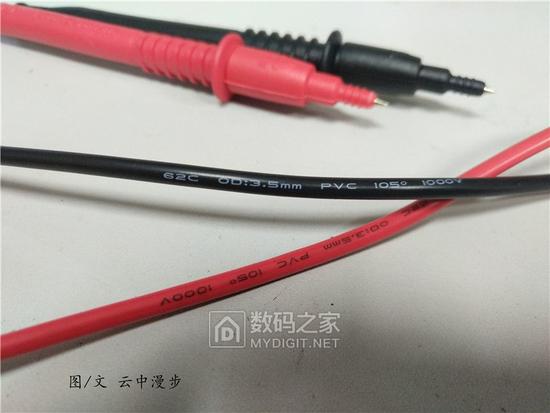 PVC耐高压表笔线线径3.5mm,耐温105°,耐压1000V,可以完全满足日常测试环境。