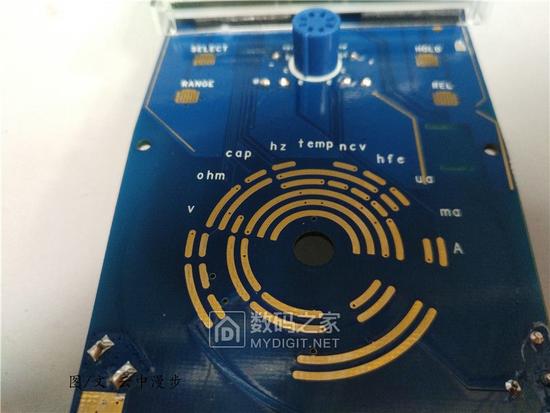 翻个身瞅瞅正面啥样子。中间凸起的是晶体管测试柱,下方则是金灿灿的刻度转盘金属铜箔。
