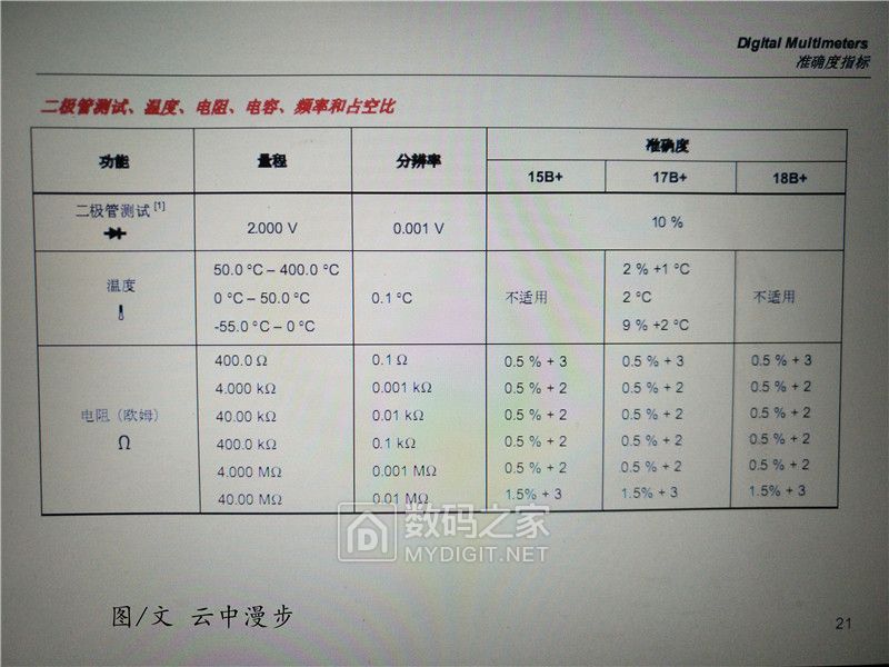 跟福禄克部分机型15B+/17B+/18B+在精度上做个对比说明。可以看出OW18B在测量电压,电流略胜一筹,要求精度更加苛刻更加精准。
