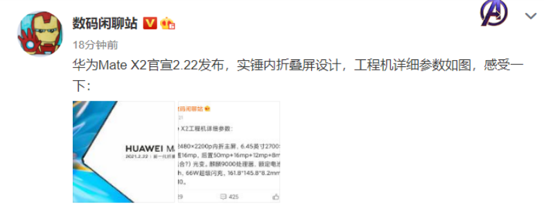 2021年02月03日 | 华为 Mate X2 折叠屏手机官宣或月底发布