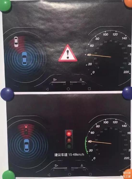 ▲绿波车速功能:以绿波图像和声音提示车主是否可在当前绿灯通过,减少等待红灯时间