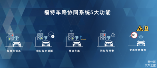 基本来说,福特的车路协同系统能够带来的功能主要集中在V2I层面,也就是车辆和道路基础设施的通信交互层面,主要优先解决交通通行效率的痛点。