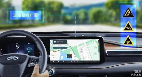 按照福特中国的说法,福特的车路协同系统采用了C-V2X技术中基于蜂窝网络的通信模式,也就是“车-路-云”模式,将城市交通云控平台下发的交通信号灯、道路事件等数据与车辆当前位置、状态和驾驶者意图等数据相结合,为车主准确、适时、智能地推送信息。