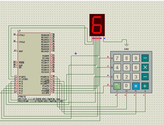 作输入线,以P3.4-P3.7 作输出线;在数码管上显示数字按键的“0-9”序号,其它按键显示0。