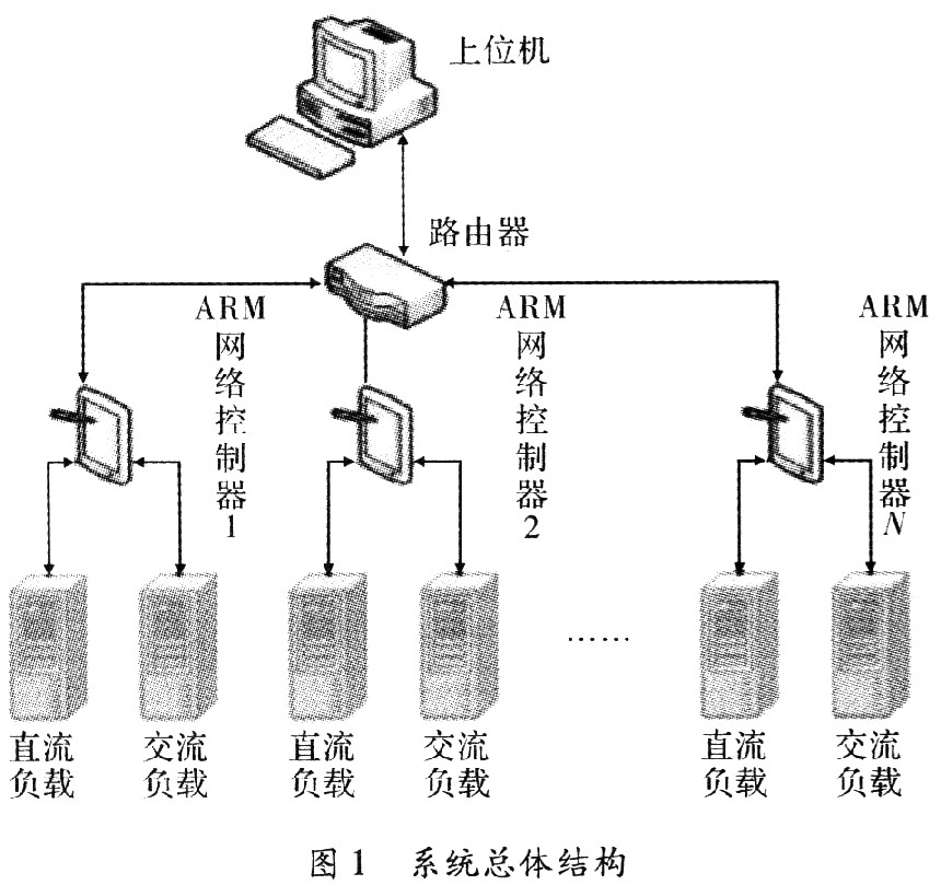电子负载监控系统是一个以ARM为核心的通讯网络。系统结构,如图1所示。