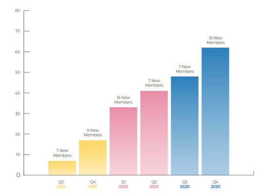 •会员数的增加,涵盖多个细分市场的60多个行业领导者;