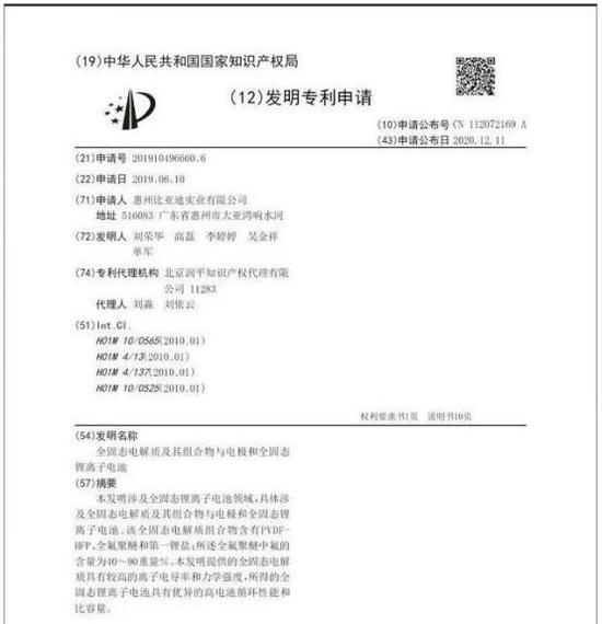 另外一家新能源巨头比亚迪在固态电池研究上已未雨绸缪多年。近日根据国家知识产权局的信息,比亚迪公布了283项专利授权,涉及固态电池、电池热管理、自动驾驶控制系统等技术。其中有一项是“一种正极材料及其制备方法、一种固态锂电池”,申请日期为2019年7月17日,申请公布日为2021年1月19日,公开号CN112242519A。本发明还提供了正极材料的制备方法和固态锂电池。该正极材料可同时构建锂离子传输通道和电子传输通道,极大的提升了固态锂电池的容量发挥、首圈库伦效率、循环性能和高倍率性能。还有一个专利也跟固态电池有关,名为“一种锂离子电池固态电解质及其制备方法和固态锂离子电池”,申请日期为2019年7月19日,申请公布日同样为2021年1月19日,公开号CN112242557A。据报道,比亚迪称预计最早将于2021年量产固态电池,2022年应用到旗下高端车型当中。