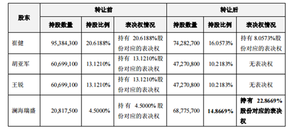 完成登记后,澜海瑞盛合计持有东软载波股份68,775,700股,占东软载波总股本的14.8669%,持有东软载波有表决权股份105,784,430股,占东软载波总股本的22.8669%。澜海瑞盛成为东软载波单一拥有表决权比例最大的股东,为东软载波的控股股东,东软载波实际控制人变更为佛山市南海区国有资产监督管理局。