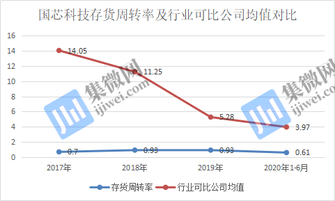 而在存货周转率方面,国芯科技也处于相对偏低水平。报告期内,国芯科技的存货周转率分别为0.70、0.93、0.93、0.61,均低于1;同行业可比公司同期存货周转率平均值分别为14.05、11.25、5.28、3.97,均高于国芯科技。