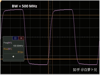 图5 - 使用500MHz带宽示波器捕获100MHz时钟信号(图片来自网络,侵删)