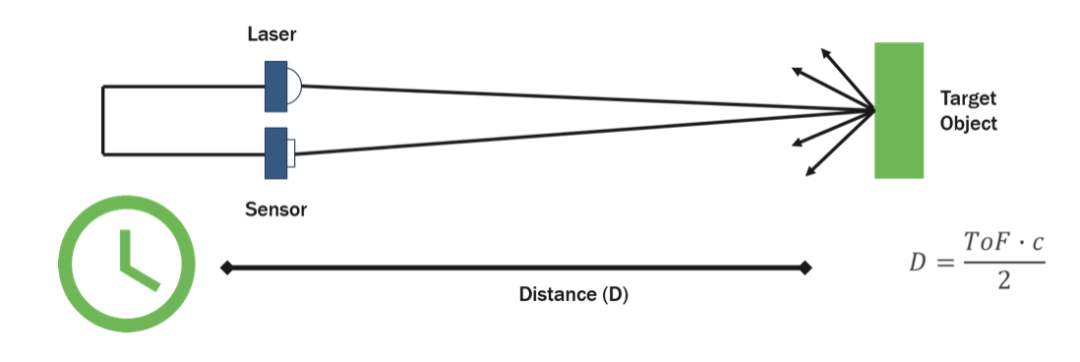 LiDAR系统发出的光束射到目标上,然后被反射回靠近光源的传感器。通过测量光传播所需的时间并知道光的恒定速度,可以高精度地计算目标的距离。这称为飞行时间(ToF)。