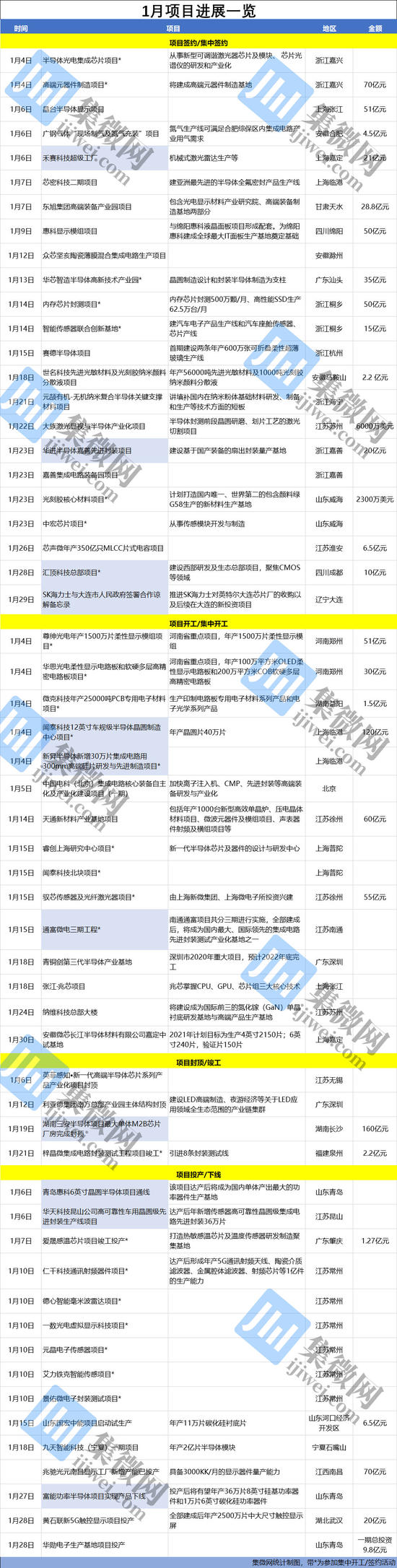 集微网消息 2021年1月集成电路领域的项目进展概况: