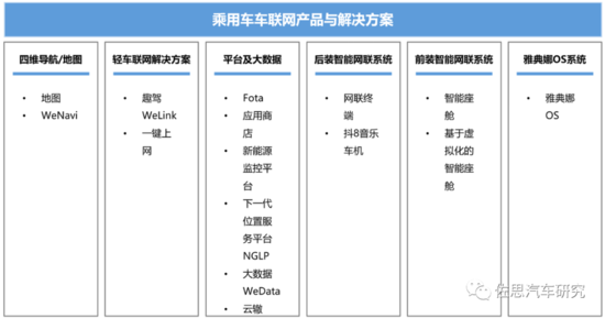 乘用车车联网由四维图新旗下四维智联研发运维,依托四维图新车联网云平台,为客户提供智能网联终端、手机车机互联方案及云端车联网大数据等服务。