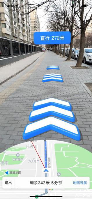 这个导航依靠AR渲染和智能定位等技术,可以进行真实的3D实景指引,从而让方向感弱的用户能更好的辨清方向。