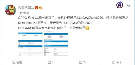 一款型号为 OPPO PEDM00 的新机昨日出现在了 Geekbench 基准测试数据库中,据数码博主 @数码闲聊站 透露,该机即为 OPPO 新一代旗舰机型 OPPO Find X3,虽然样机搭载了普通的 sm8250,但量产机将会换为 3.19GHz 的骁龙 870 芯片。