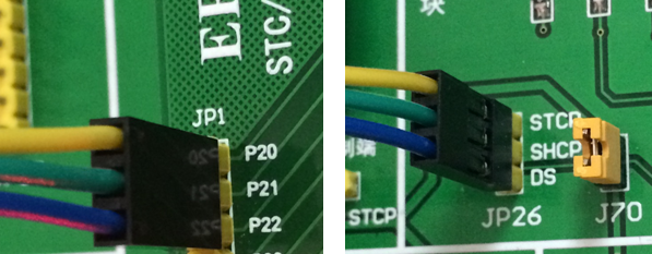 具体接线为: P20-STCP,P21-SHCP,P22-DS