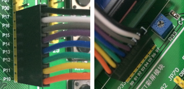 具体接法: P10-D0, P11-D1,P12-D2,P13-D3,P14-D4,P15-D5,P16-D6,P17-D7;