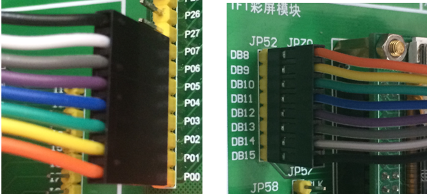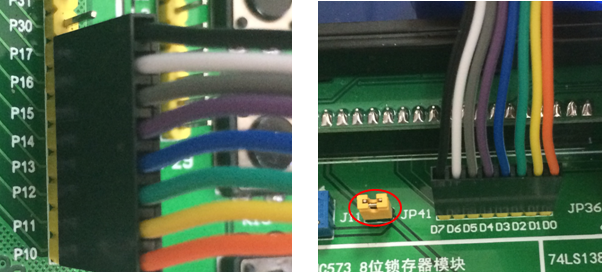 具体接法:P10-D0, P11-D1,P12-D2,P13-D3,P14-D4,P15-D5,P16-D6,P17-D7;
