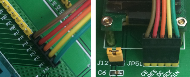 具体接法:P10-DIN,P11-SCK,P12-DC,P13-RES,P14-CS。