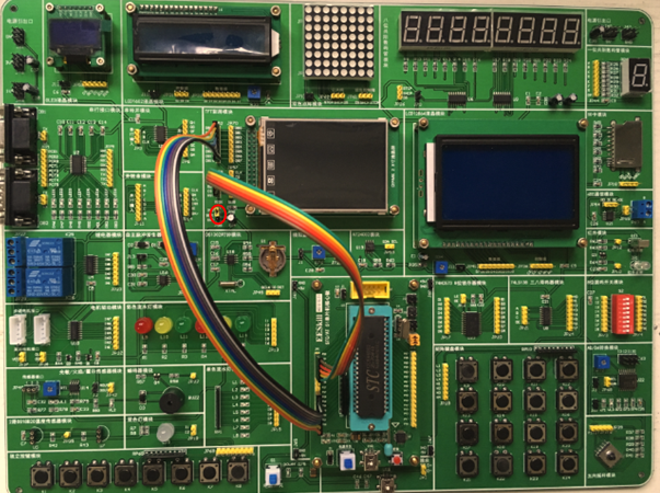 接线说明: 用1根8P杜邦线将单片机P1口与底板JP41排针相连;