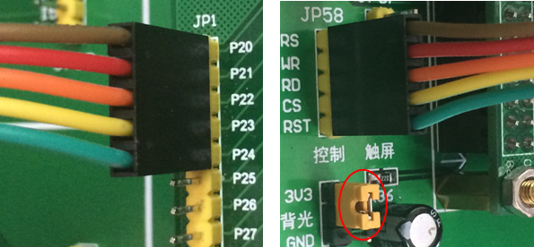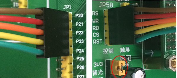 具体接法: P20-RS,P21-WR,P22-RD,P23-CS,P24-RST;