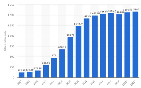 其实还有一个原因导致苹果考虑进军汽车领域,那就是全球手机市场在2014年已经开始有饱和的趋势,尤其是苹果手机的销量,开始增速放缓;而苹果飙升的市值背后,财报中有60-70%是由手机业务贡献的营收,所以苹果其实此时已经不得不开始考虑新的产品。比如穿戴设备Apple Watch就是在2014年首次面世。