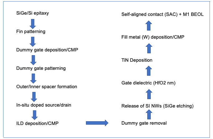 图2:堆叠纳米片FET的工艺流程。资料来源:Leti