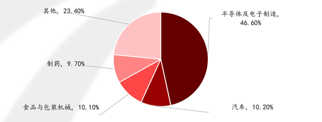 受高精度要求机器视觉的下游需求结构相对单一,半导体及电子制造、汽车行业应用仍占半壁江山,占比分别为46.6%和10.2%。随着新能源行业的快速发展,成为新的增长极;同时医药、食品等领域的应用也在兴起。以食品行业为例,机器视觉目前应用于检测和分拣等,但主要是伊利、蒙牛等大型食品企业使用较多,在行业内整体渗透率并不高,因此未来智能制造大趋势下,渗透率逐步加深可期。