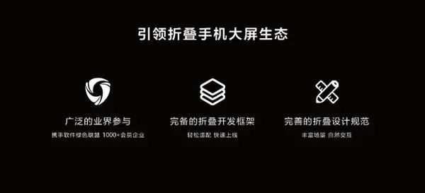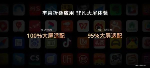 华为一直致力于打造极致的折叠屏体验,2019年起携手软件绿色联盟建立首个折叠屏生态联盟,并推出了日趋完备的折叠开发框架和设计规范。截止目前,国内TOP200应用已实现100%大屏适配,TOP1000应用已实现95%大屏适配,阅读、视频、网购、游戏、社交、办公、出行、理财等多个场景下拥有更加极致的使用体验。