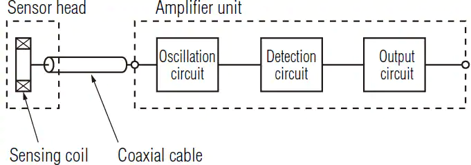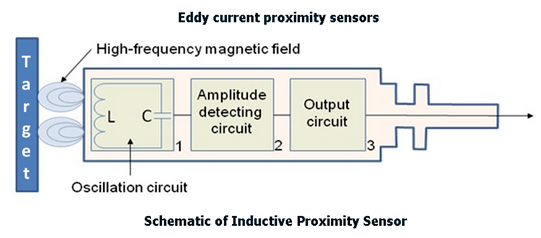 如下图所示,有一个初级线圈被一个频率激发(通常在1到5兆赫兹之间)来产生磁场,两个次级线圈用来检测这个磁场。反过来,利用法拉第定律,这些线圈把磁场转换成电压。放置在磁场中的金属靶会产生与磁场相反的涡流,增加感应器电流流量,改变感应关系。