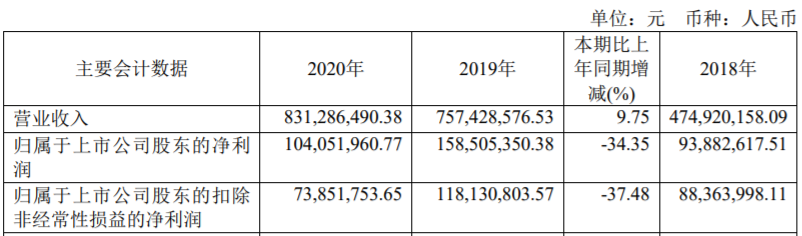乐鑫科技表示,2020年度上半年,全球疫情扩散,公司业务遍布全球,下游客户生产受影响不一,综合导致公司营业收入同比下降9.31%;下半年随着疫情得到防控,公司营业收入同比增长23.94%。全年公司实现营业收入为83,128.65万元,较2019年同期增长9.75%。归属于上市公司股东的净利润10,405.20万元,较2019年同期减少34.35%,主要系由于营业收入因疫情影响增长放缓,同时公司仍然持续加大研发投入,研发费用快速增长所致。