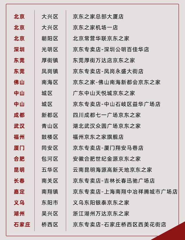 京东之家目前在全国范围内已经在 30 多个省级行政区入驻,进入了国内超过 300 个城市。魅族 18 系列旗舰手机将会在 20 家 “京东之家”线下门店同步上市。以下为魅族进驻的首批京东之家首批门店名单: