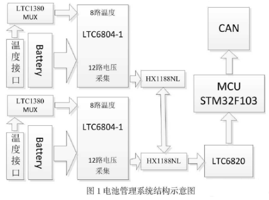 LTC6804是Lmear公司2012年发布的第三代多电池组监视器,可几乎同时测量多达121、串接电池的电压,并具有更低的总测量误差相比LTC6803测量精度有了不小的提升,本文基于该芯片,辅以热电阻式温度传感器实现多路的温度采集,配合Ⅱ公司STM32F103单片机实现电池管理系统模块单个模块实现24个单体电池的充放电电压监控(两片LTC6804)和16路的温度采集,支持can总线。