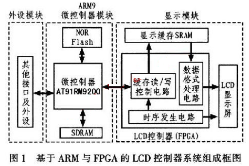 系统主要有微控制器、FPGA(LCD控制器)、存储单元以及外设接口组成,系统组成框图如图1所示。
