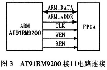 该系统设计的主控单元采用ATMEL公司的AT9lRM9200(简称9200)作为MCU,该处理器是基于ARM920T内核,工作主频为180 MHz。性能可达到200 MI/s,系统采用开源的LINUX OS。但是ARM9作为系统的控制终端,需要完成信息采集、处理以及与外部通信等多项工作,而LCD控制器如果也要从内存中读出数据显示,这就会造成处理器负担,从而降低显示缓存读入数据的速率,影响LCD的实时显示。因此这里提出一种基于LINUX 0S下的Framebuffer接口的应用方法,大大提升显存读入数据的速率,从而提升整个显示系统的实时性。图3为AT91RM9200接口电路连接。