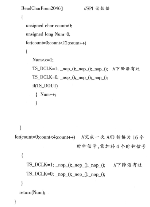 根据时序图,采用12位输出结果方式取读TSC2046子函数代码如下: